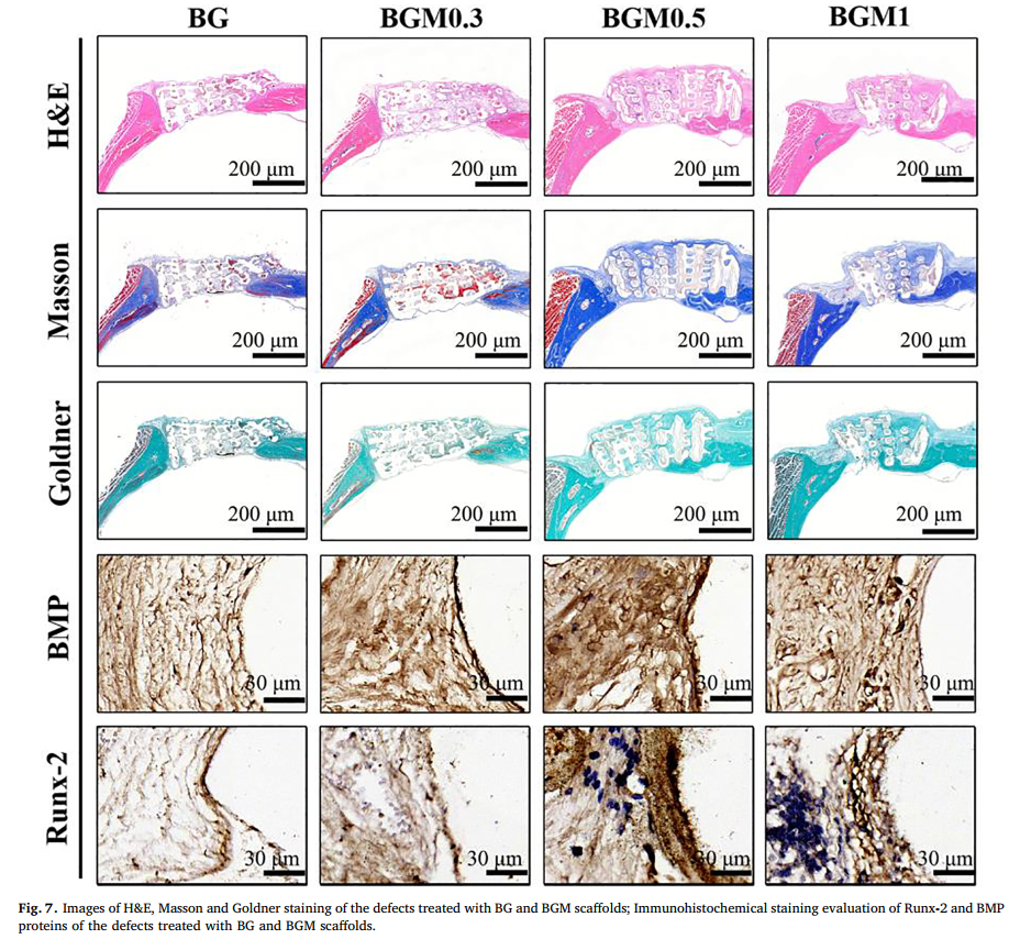 该项研究在制备抗肿瘤/骨修复多功能材料的基础上,结合生物活性玻璃优良的材料学性能与纳米材料的优异光热抗肿瘤功能,创新地设计出的多功能材料,可根据临床所需赋予材料的相应功能,这将无疑会在组织一体化工程领域发挥巨大的作用,不仅具有较高的实际临床应用价值和学术意义,还将为生物材料领域研究给予新的思路和科学依据。