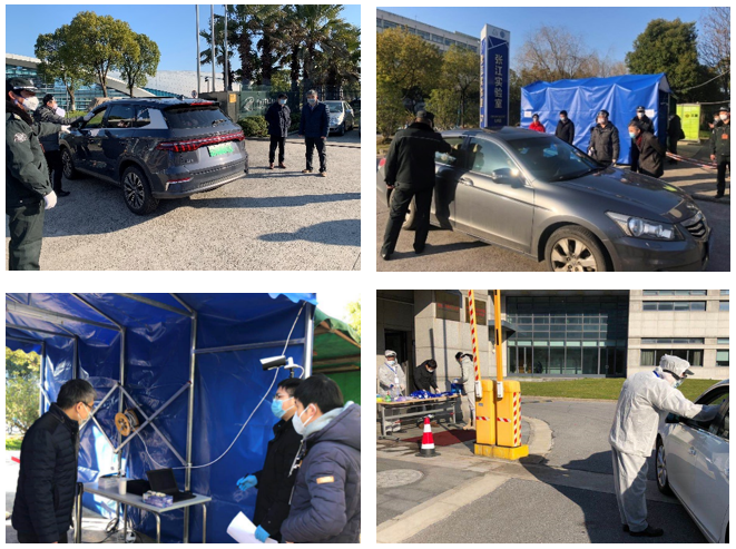 为保障全院人员安全,复工人员入园体温检测成了重中之重。全体院领导带班执勤,在四个园区入口协调入园秩序,驻守疫情防控最前线,督促高研院疫情防控各项措施落到实处,领导率先垂范,最大程度凝聚起员工的力量。高研院党员志愿者持续参与,4个园区,共有42名党员加入到首批执勤队伍,全力实行入园人员身份核验和体温检测工作。高研院购置红外测温设备,提高了入园检测效率。进入园区人员都自觉听从志愿者指挥,主动配合测量体温,体温合格后方入园工作。